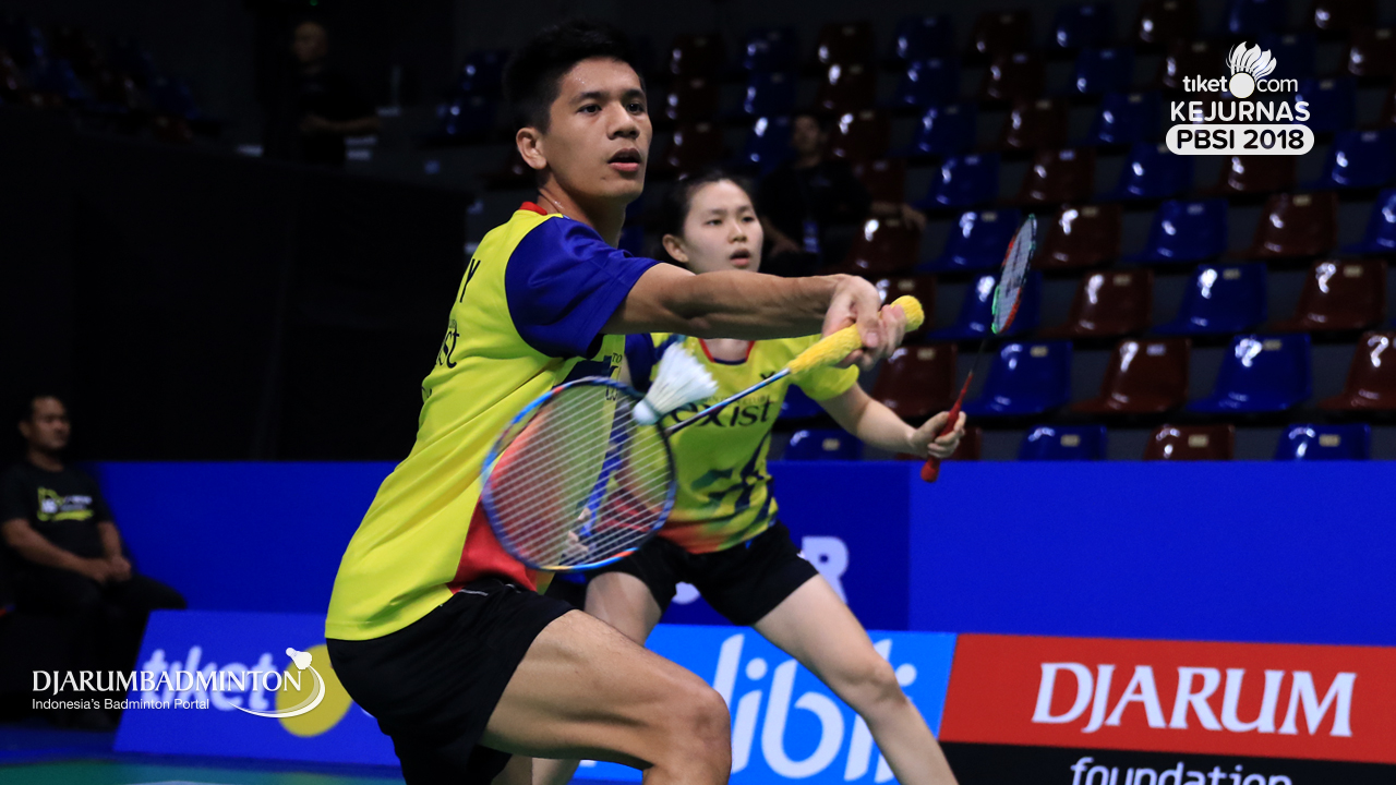 Alfian Eko Prasetya+Della Destiara Haris (Jaya Raya Jakarta) Mencoba menggapai shuttlecock