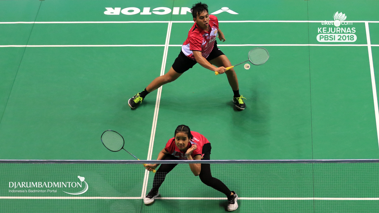 Jaya Alfian Hudha+Nahla Aufa Dhia Ulhaq (DKI Jakarta) Menahan serangan