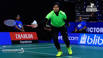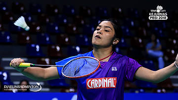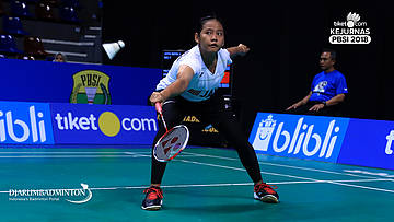 Gregoria Mariska Tunjung (Mutiara Cardinal Bandung) Mengembalikan shuttlecock
