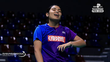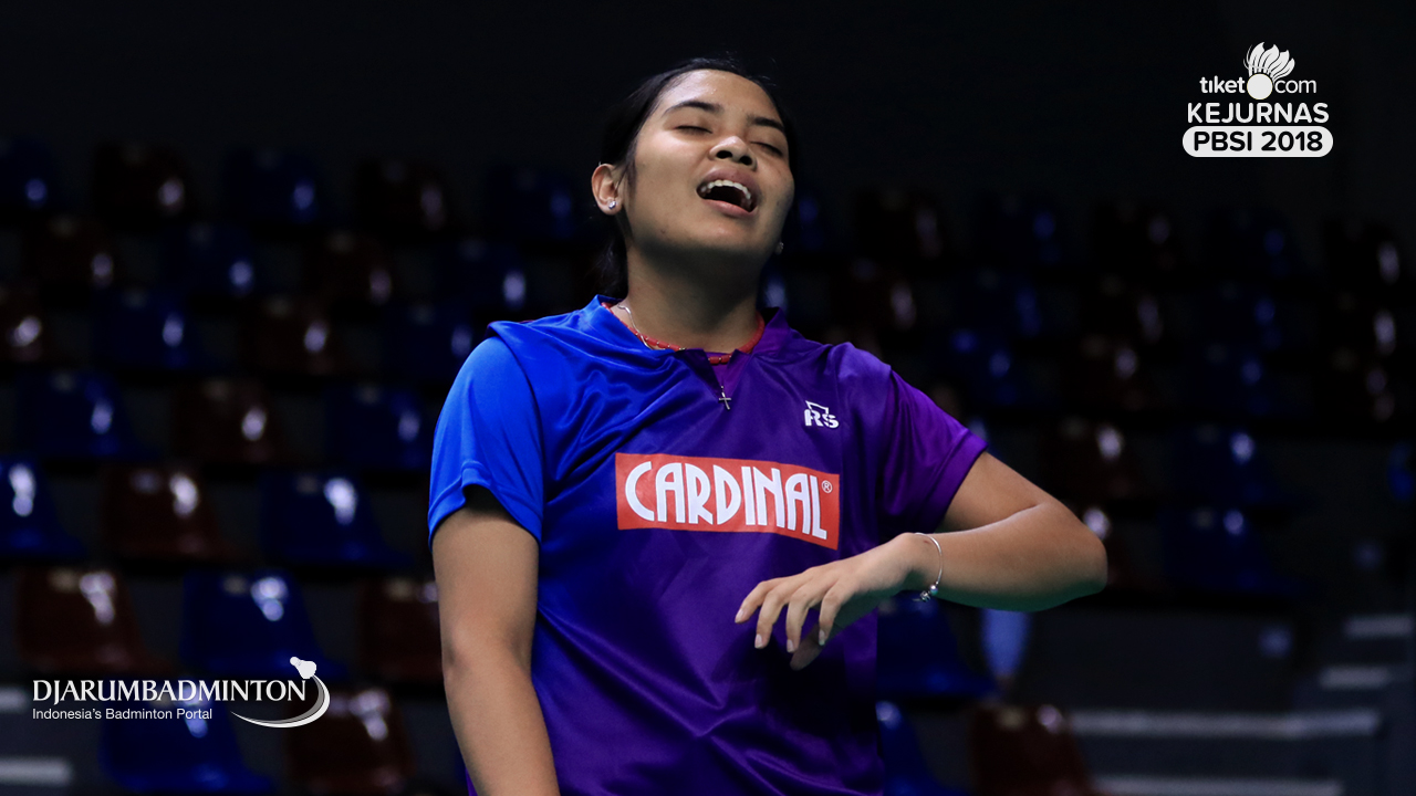 Ekspresi Gregoria Mariska Tunjung (Mutiara Cardinal Bandung) Saat kehilangan poin