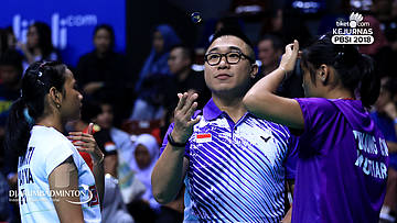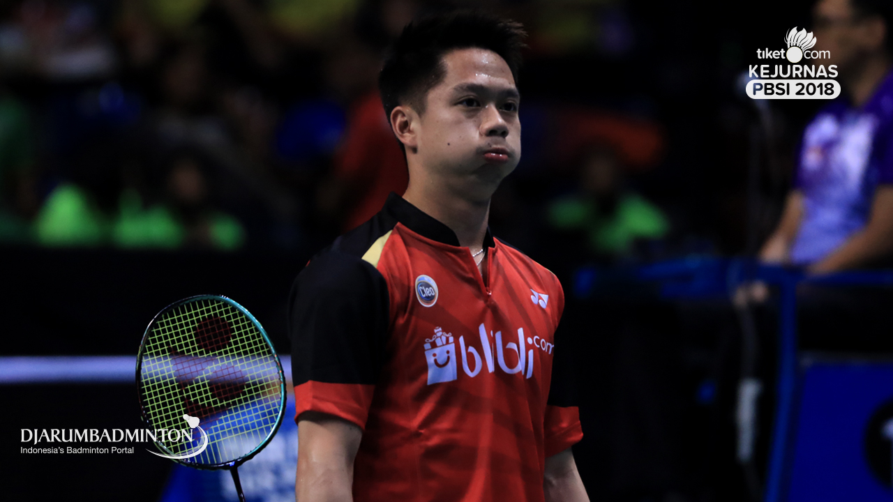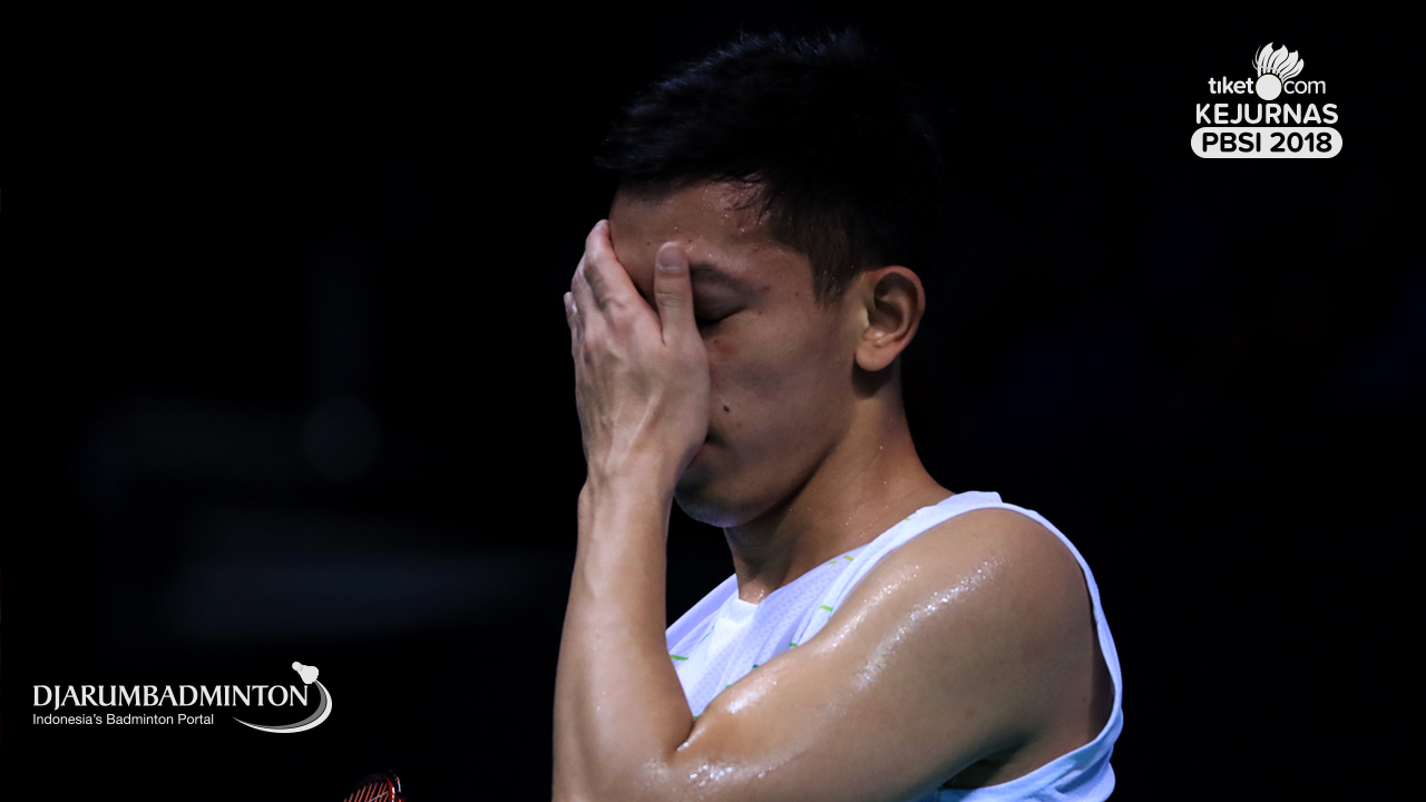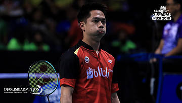 Ekspresi Kevin Sanjaya Sukamuljo (Djarum Kudus) Saat kehilangan poin
