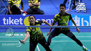 Dejan Ferdinansyah+Tsavanne Bethalia Putri Mertoso (DKI Jakarta) Mengembalikan shuttlecock