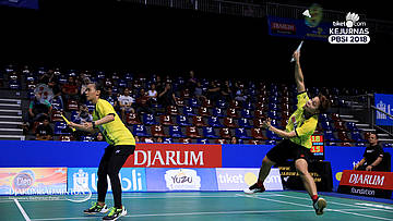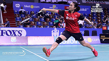 Apriyani Rahayu+Della Destiara Haris (Jaya Raya Jakarta) Melakukan smash