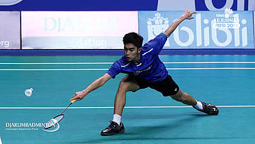Panji Ahmad Maulana (Mutiara Cardinal Bandung) Berusaha menggapai shuttlecock