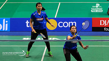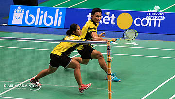 Debby Susanto+Rosyita Eka Putri Sari (Djarum Kudus) Mengembalikan shuttlecock