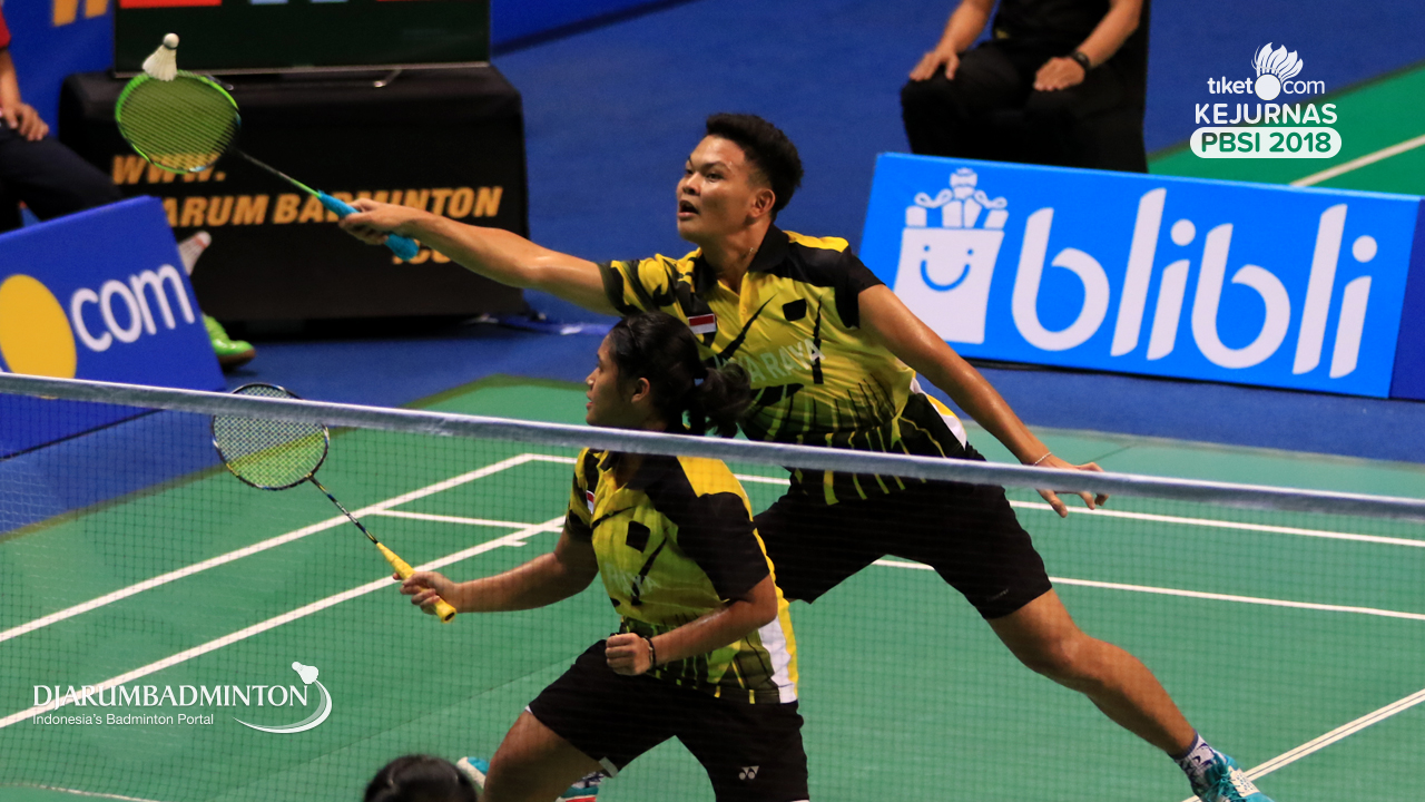 Naufal Ligo Saufik+Khusnul Khatimah (Jawa Tengah) Bersiap menyambar shuttlecock