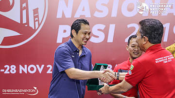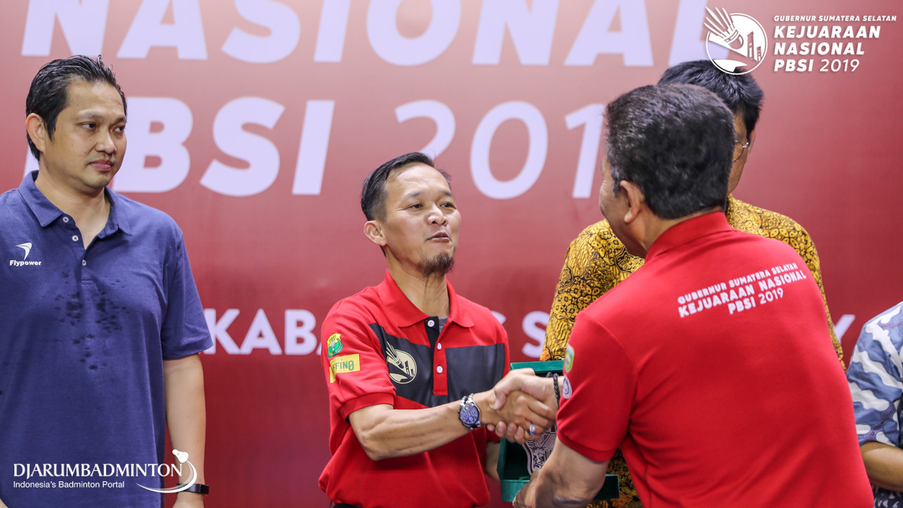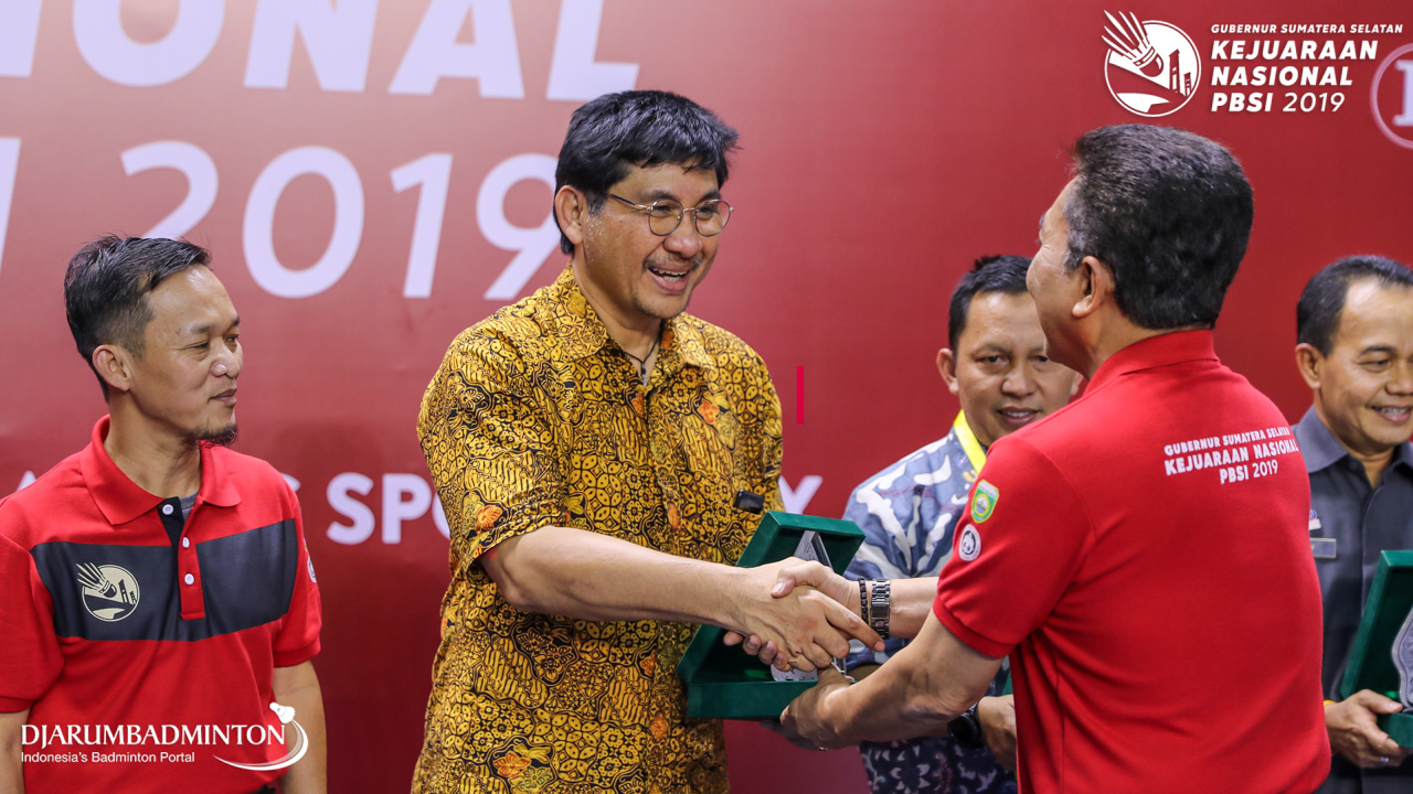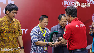 Penyerahan penghargaan kepada Sponsor oleh Sekretaris Jenderal PP PBSI, Achmad Budiharto