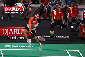 MAKASSAR - Laju pasangan ganda campuran wakil PB Jaya Raya Jakarta, Rian Swastedian/Apriani Rahayu di ajang Djarum Sirkuit Nasional (Djarum Sirnas) Li...