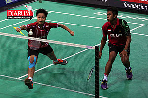 MAKASSAR - Pasangan ganda putri asal PB Jaya Raya Jakarta, Apriani Rahayu/Jauza Fadhila Sugiarto, memastikan diri melangkah ke babak semi final Djarum...