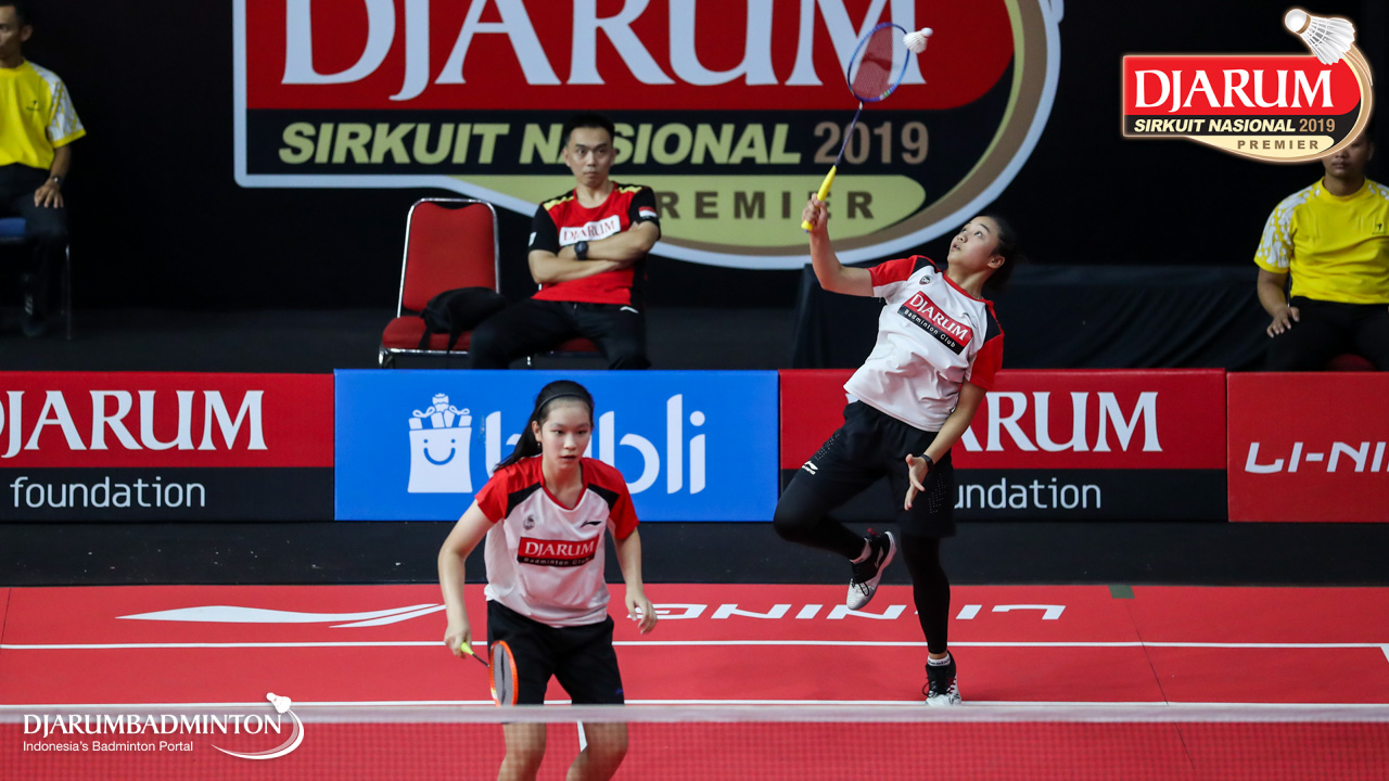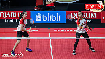 Kelly Larissa+Sintia Dewi Yuliani (PB Djarum, Kudus) menyambut shuttlecock