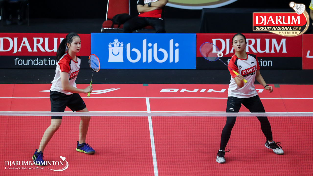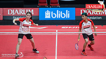 Aldira Rizki Putri+Helena Ayu Puspitasari (PB Djarum, Kudus) bersiap menyambut shuttlecock