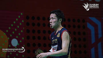 Koji NAITO (HITACHI) (JAPAN) menyambut shuttlecock