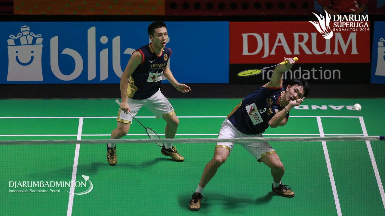 Keiichiro MATSUI+Yoshinori TAKEUCHI (HITACHI) (JAPAN) mengembalikan shuttlecock